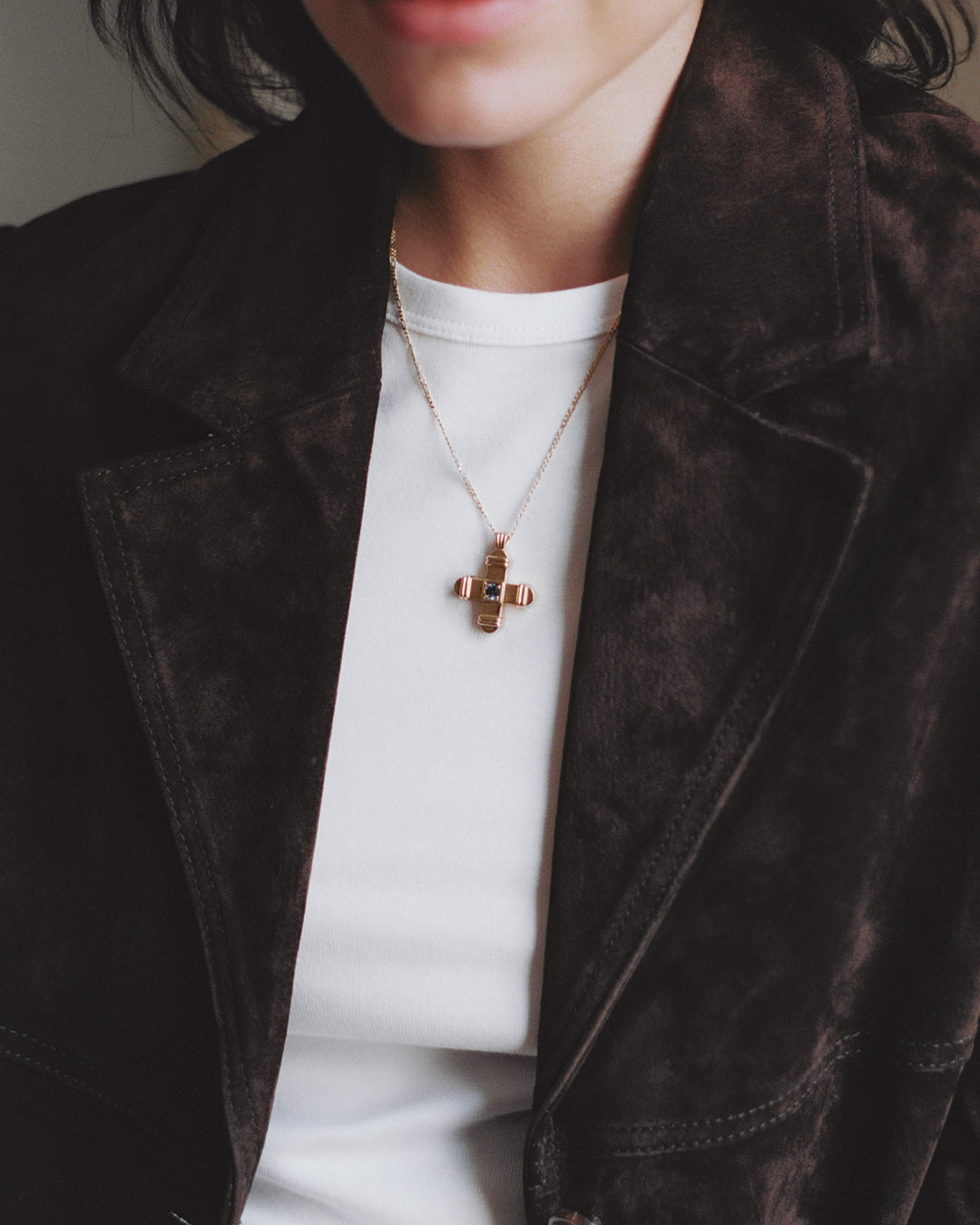 A pendant inspired by a relic from one of our grandmothers. A cross bought in Santander in the 1940s. With a central sapphire that transports us, even more if possible, to those years.