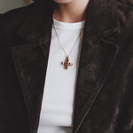 25x25mm cross and 7mm 18kt yellow gold clasp. (7.2 gr. approx.)