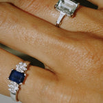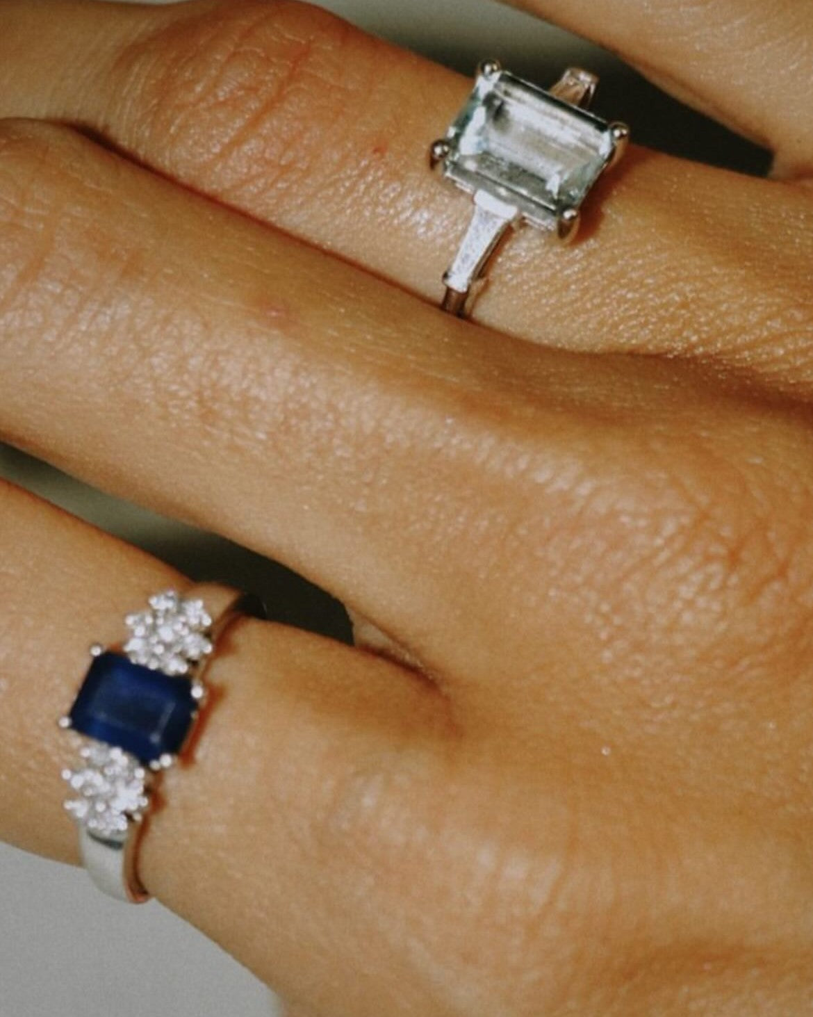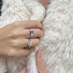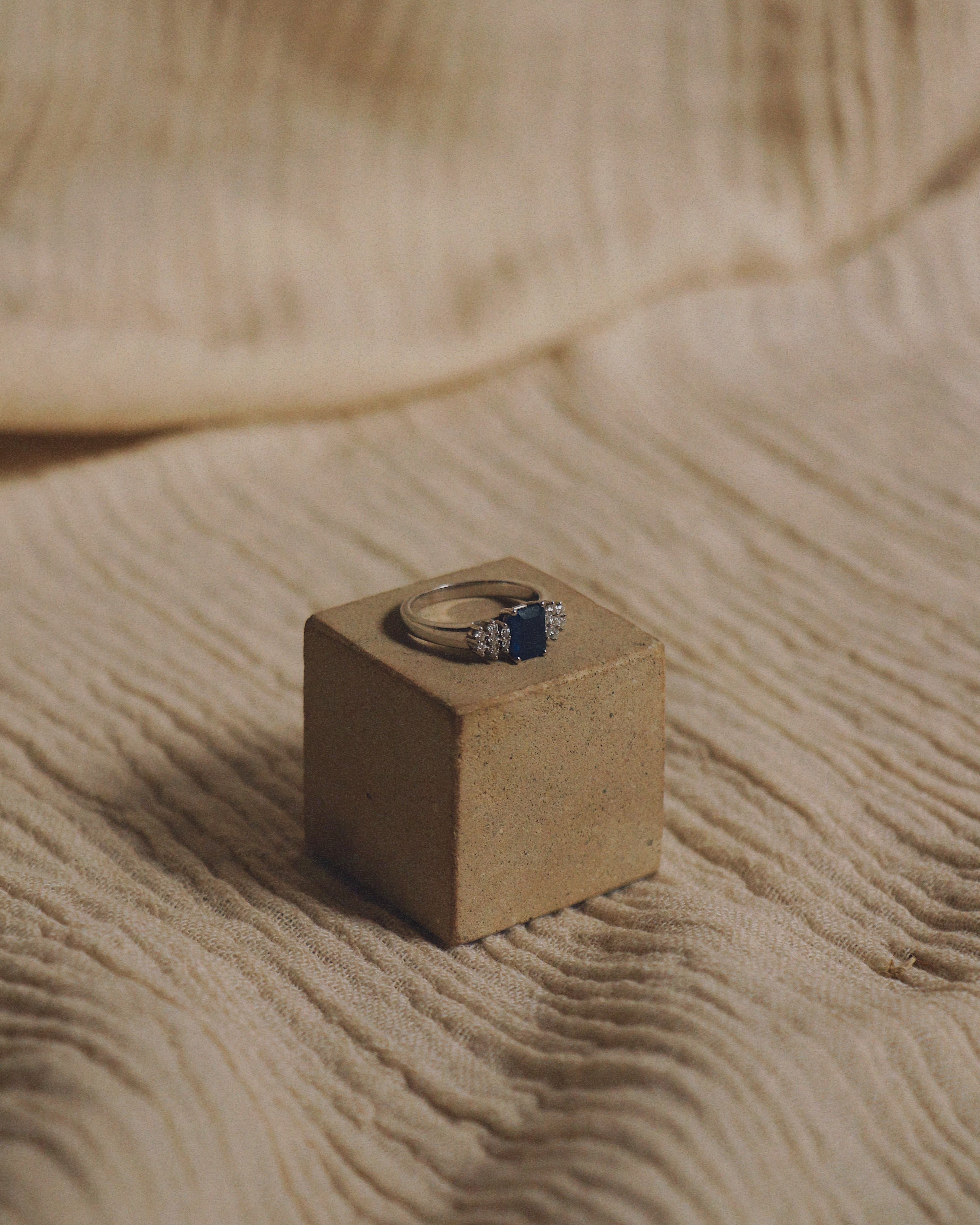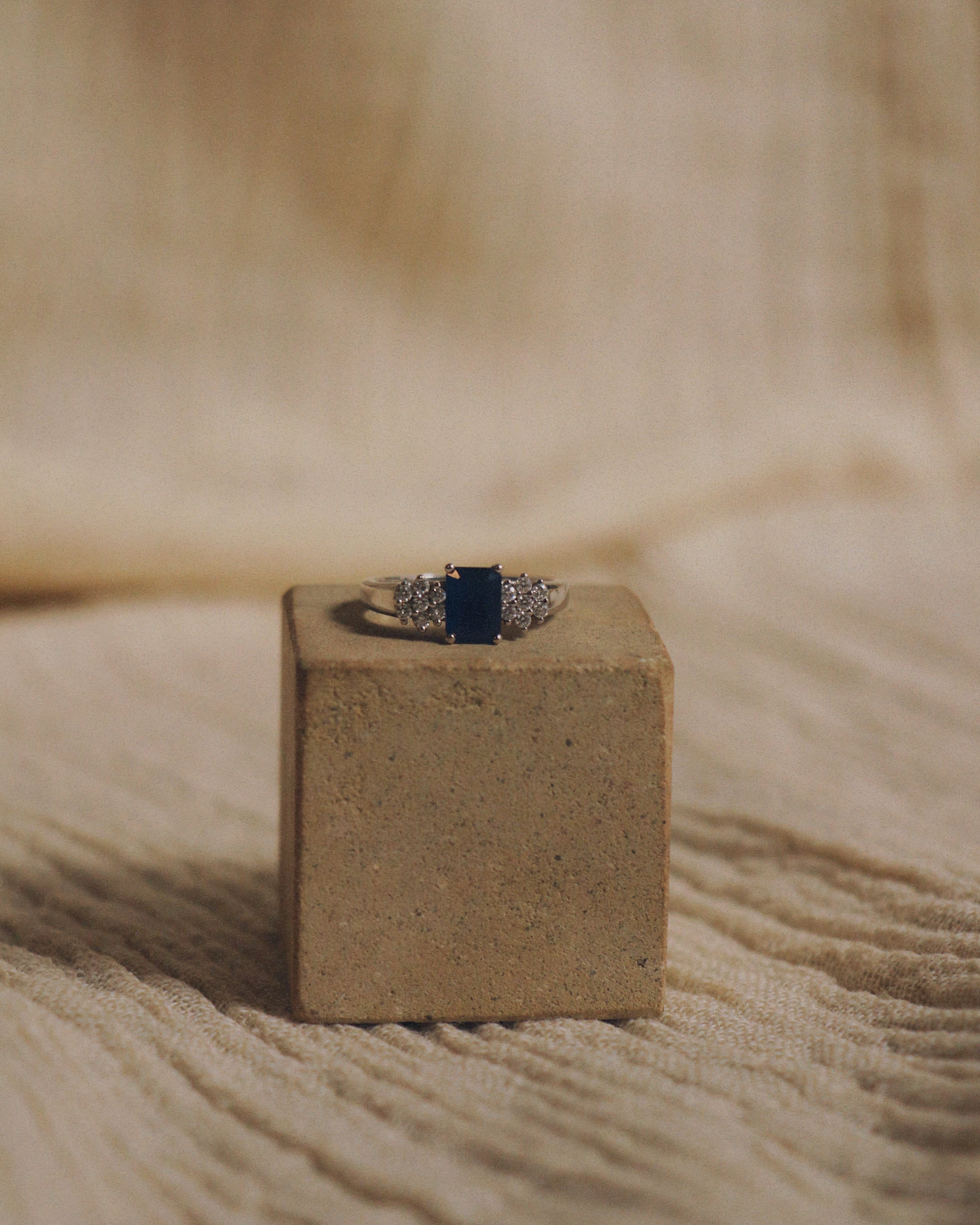 We have created this variation of one of your favourite designs, the Aura ring is made of white gold, with diamonds and a central sapphire, an ideal design for a marriage proposal. The goddess Aura is the divine personification of the breeze and was as fast as the wind, as light as the breeze and as strong as the wind, that is our Aura ring.