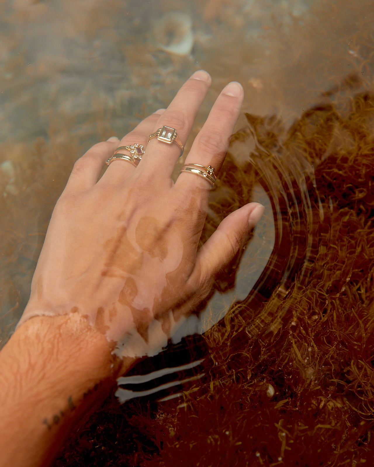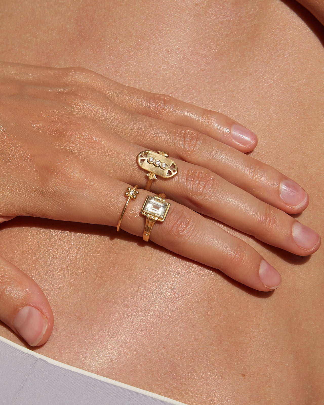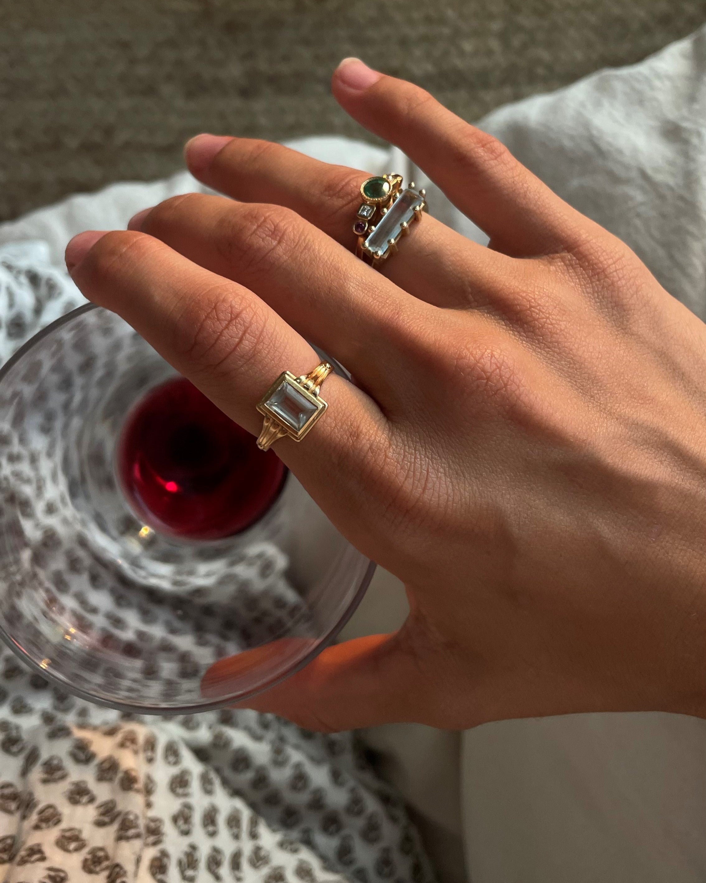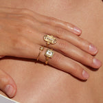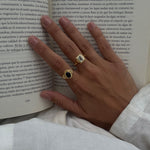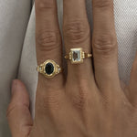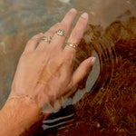 This ring transports us to another era, the aquamarine is the central stone of this piece. This stone is linked to the element of the earth, the energies of inner vision and self-love. It has a great spiritual charge, and its tone transports us to the crystal-clear waters of some magical place.
