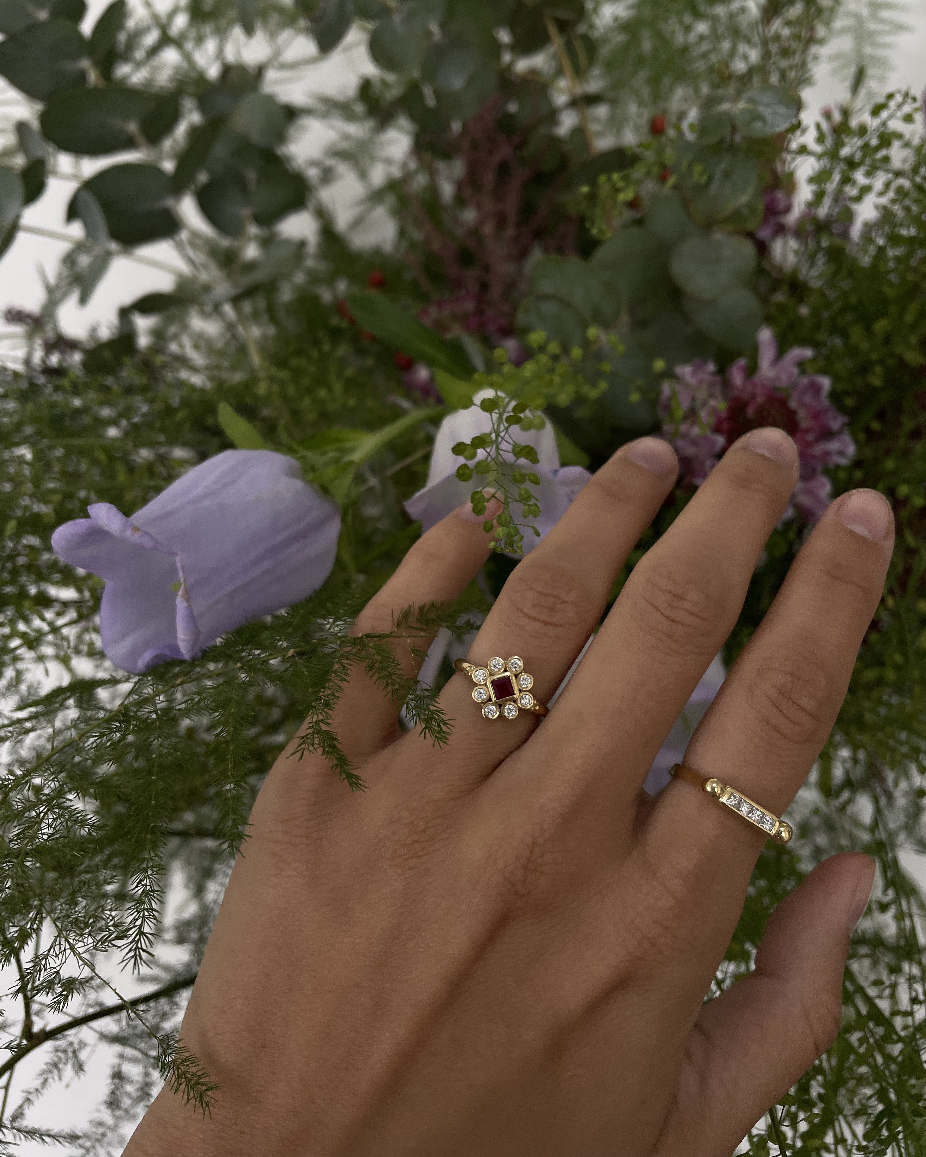 This ring is inspired by a family jewel that has been passed down from generation to generation. We chose the ruby not only for its beauty and the intensity of its colour, but also because it is a stone that activates energies, acts on the heart chakra and encourages positive dreams.